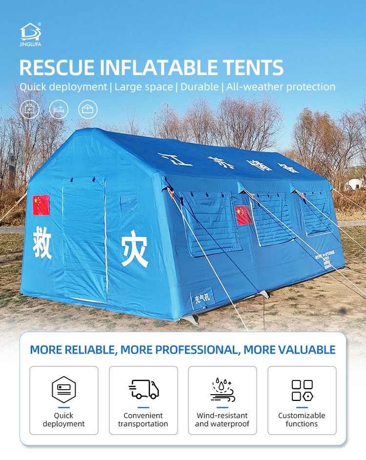 Engineered for emergency response, this fire-resistant tent uses military-grade flame-retardant PVC (1100°C rating) and rapid 5-minute inflation. Features heat-reflective layers, smoke ventilation ports, and modular zones for equipment storage. Ideal for wildfire containment or urban rescue bases.